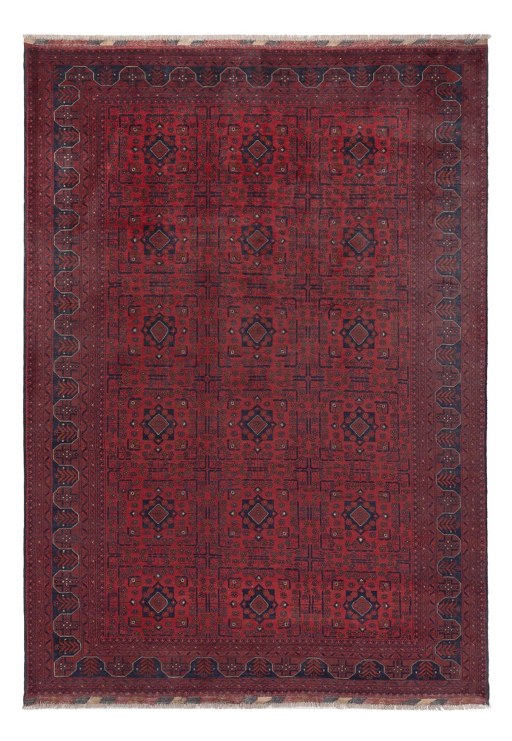 Der wunderschöne Afghan Teppich – Kunduz ist ein echter Khal Mohammadi und begeistert durch seine satten Farben und die atemberaubende Musterung. Diese Teppiche werden in Afghanistan auf Dörfern und in Werkstätten von Hand geknüpft. Afghan Teppiche sind wegen ihrer schönen roten Farbschattierung berühmt. Einige Hauptmerkmale dieser Teppiche sind die wiederkehrenden Hexagone, die Rauten, die Yomut-Motive und das Muster, das mit einem Elefanten Fußabdruck gleicht. Die Wolle ist weich und damit sehr strapazierfähig. Oftmals wirkt die Wolle leicht glänzend. Seine Qualität überzeugt jeden Liebhaber orientalischer Teppiche. Ein schöner Teppich, der seinen Preis absolut wert ist.