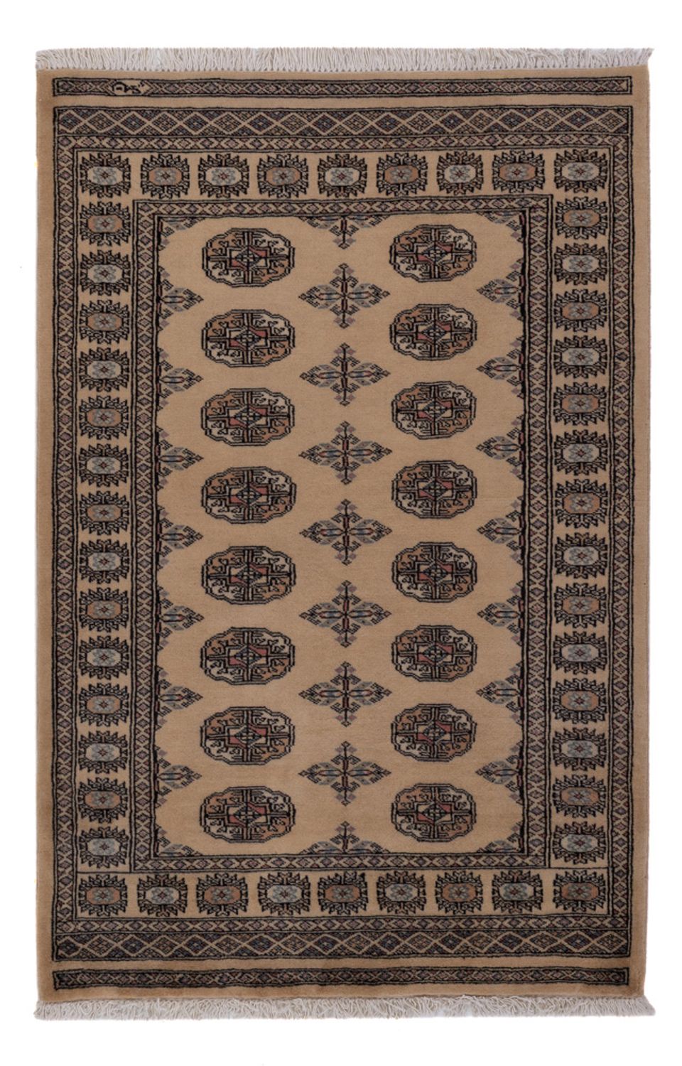 Dieser handgeknüpfte Teppich aus Pakistan besitzt sehr klassische Merkmale der Afghanischen Teppiche. Die Teppiche werden aus Wollgarn hergestellt und sie sind dicht geknüpft. Die Wolle ist weich und damit sehr strapazierfähig. Oftmals wirkt die Wolle leicht glänzend und ist durch ihre dichte trittschalldämpfend. Die geometrischen Muster wiederholen sich auf dem Flor und machen dieses Exemplar somit zu einem wahren Hingucker. Seine Qualität überzeugt jeden Liebhaber orientalischer Teppiche. Es ist ein schöner Teppich, der seinen Preis absolut wert ist. Heutzutage gelten diese Teppiche als die hochwertigsten, die in Pakistan hergestellt werden.