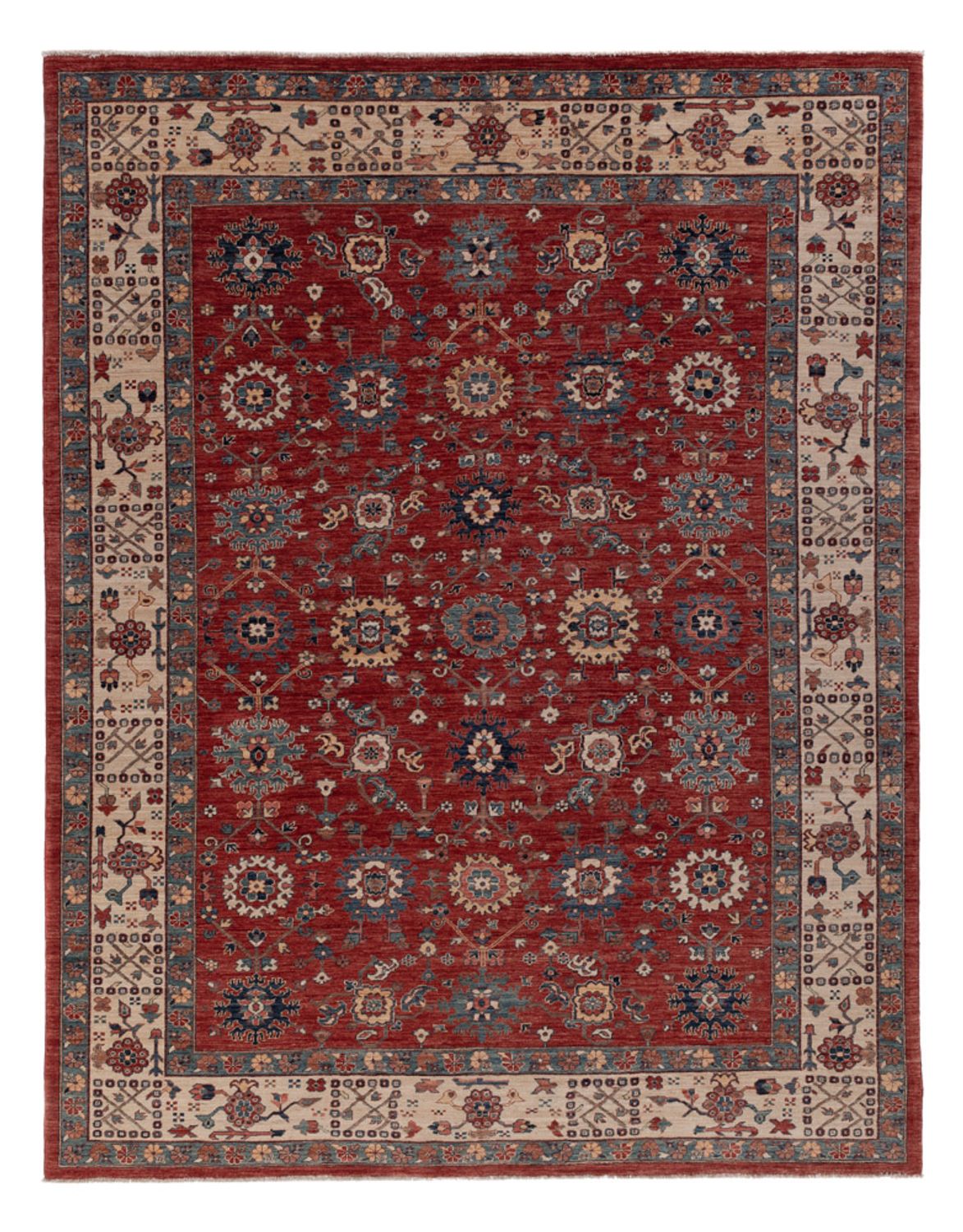 Dieses Exemplar ist mit höchster Sorgfalt aus Hand gefertigt worden. Bei handgearbeiteten Teppichen kann es zu minimalen Unregelmäßigkeiten bei Größe und Form kommen.