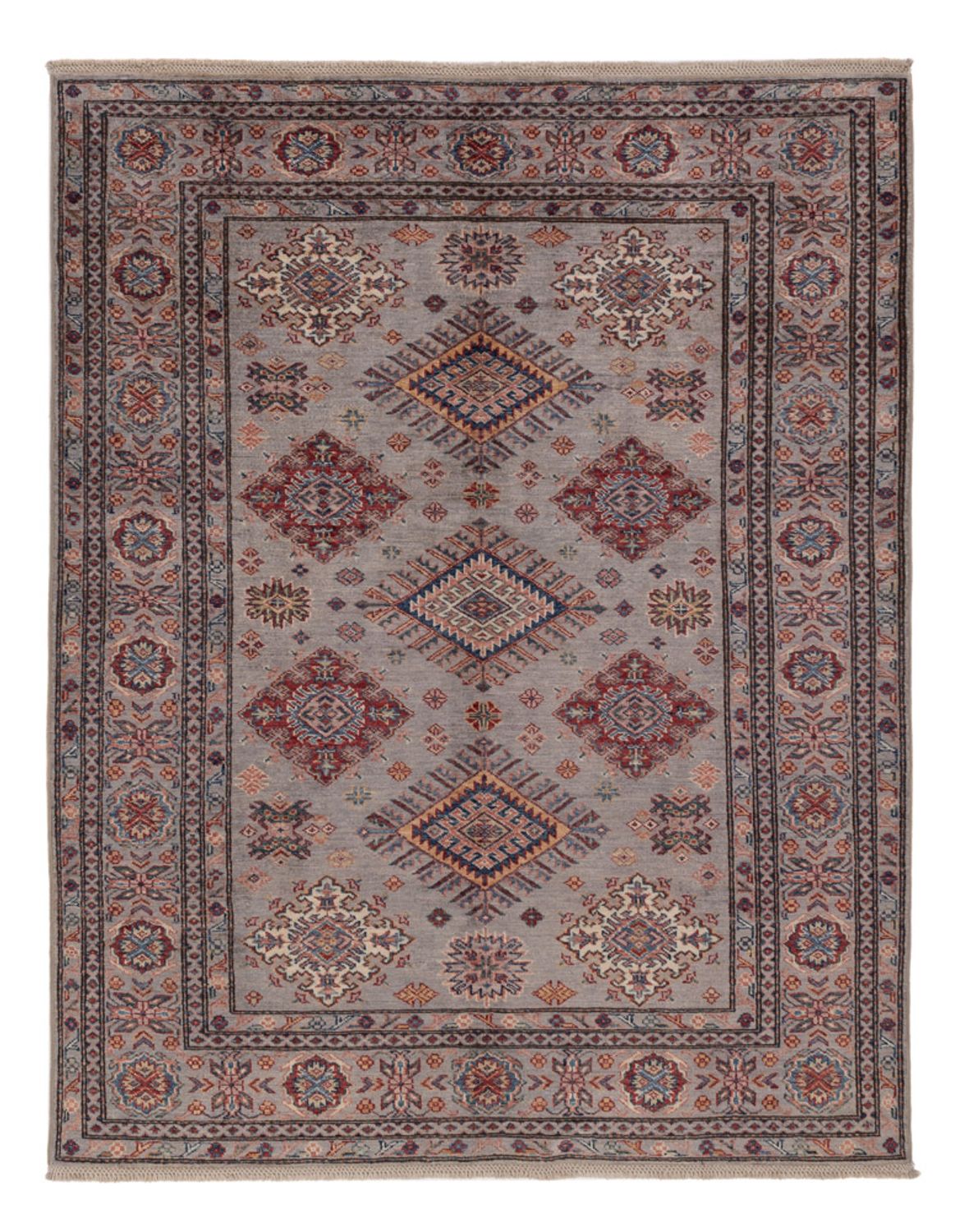 Dieser Ziegler Teppich – Kazak bringt frischen Wind in dein Zuhause! Das Knüpfgebiet der Kazak liegt im Kaukasus. Das Muster ist von geometrischen Mustern aus Russland inspiriert und die Wolle wird mit natürlichen Pflanzenfarben gefärbt. Die Teppiche sind strapazierfähig und haben kräftige Farben. Nach der Knüpfung werden sie mit Steinen gewaschen, um den besonderen glänzenden Charakter zu erzielen. Die heutigen Kazaks sind fast immer Teppiche die in Pakistan oder Afghanistan geknüpft wurden und deren Muster sich an den antiken Vorbildern des gesamten Kaukasus-Gebiets orientieren.