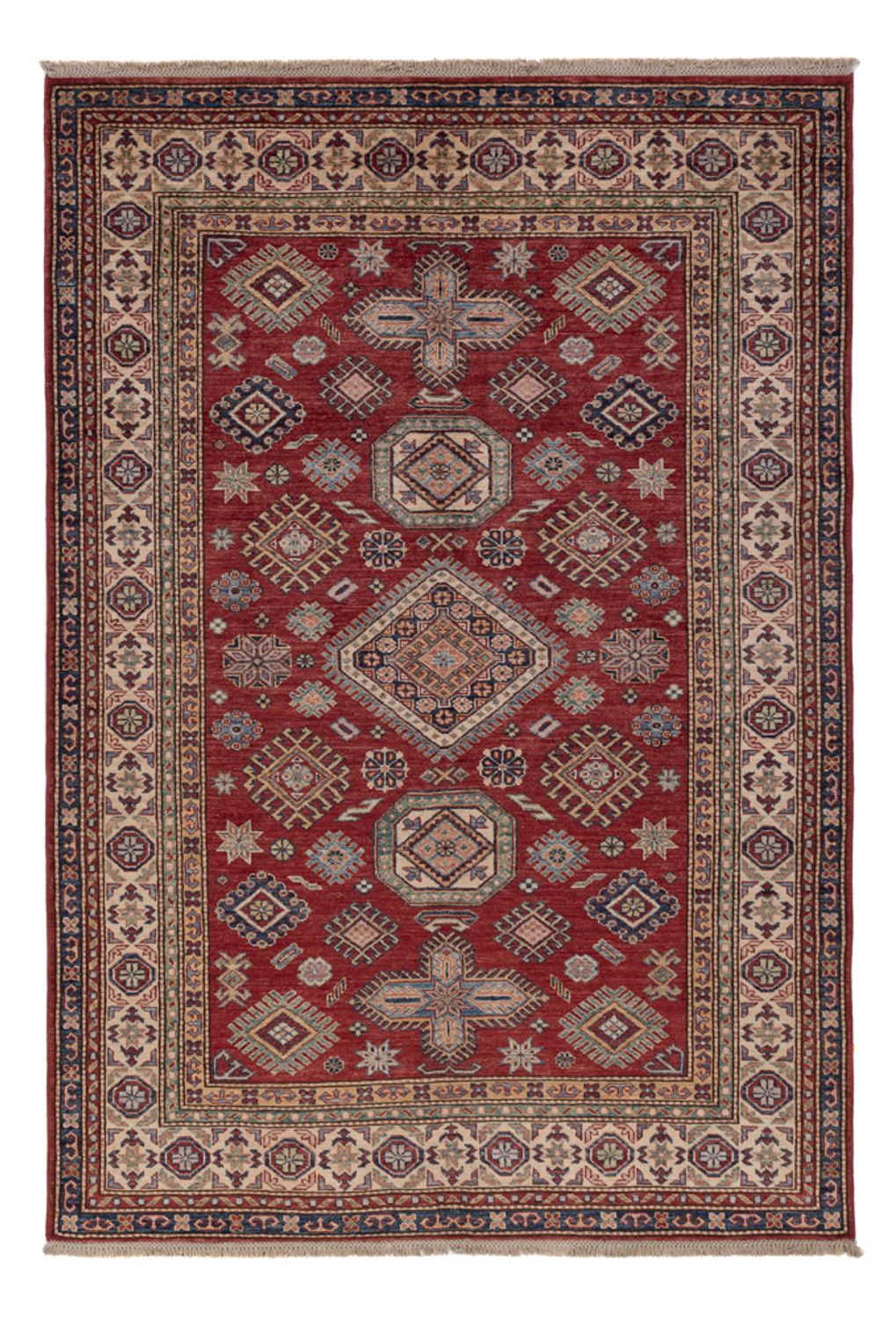 Dieser Ziegler Teppich – Kazak bringt frischen Wind in dein Zuhause! Das Knüpfgebiet der Kazak liegt im Kaukasus. Das Muster ist von geometrischen Mustern aus Russland inspiriert und die Wolle wird mit natürlichen Pflanzenfarben gefärbt. Die Teppiche sind strapazierfähig und haben kräftige Farben. Nach der Knüpfung werden sie mit Steinen gewaschen, um den besonderen glänzenden Charakter zu erzielen. Die heutigen Kazaks sind fast immer Teppiche die in Pakistan oder Afghanistan geknüpft wurden und deren Muster sich an den antiken Vorbildern des gesamten Kaukasus-Gebiets orientieren.