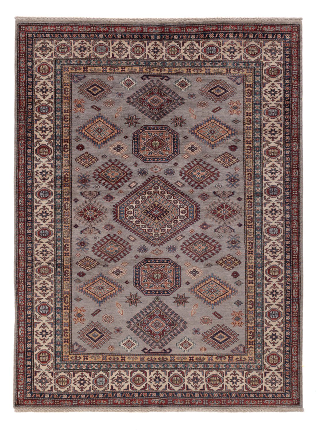 Dieser Ziegler Teppich – Kazak bringt frischen Wind in dein Zuhause! Das Knüpfgebiet der Kazak liegt im Kaukasus. Das Muster ist von geometrischen Mustern aus Russland inspiriert und die Wolle wird mit natürlichen Pflanzenfarben gefärbt. Die Teppiche sind strapazierfähig und haben kräftige Farben. Nach der Knüpfung werden sie mit Steinen gewaschen, um den besonderen glänzenden Charakter zu erzielen. Die heutigen Kazaks sind fast immer Teppiche die in Pakistan oder Afghanistan geknüpft wurden und deren Muster sich an den antiken Vorbildern des gesamten Kaukasus-Gebiets orientieren.