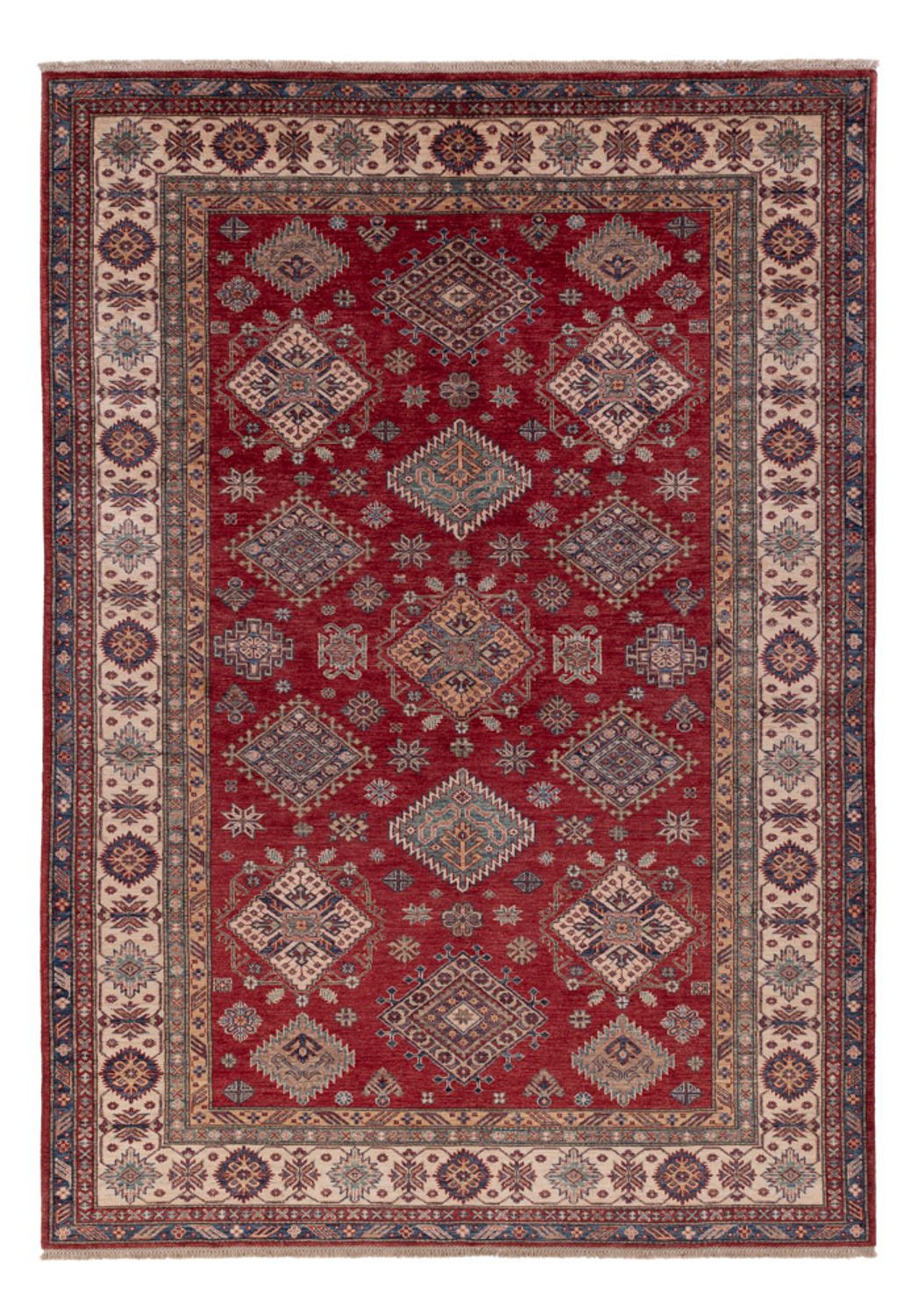 Dieser Ziegler Teppich – Kazak bringt frischen Wind in dein Zuhause! Das Knüpfgebiet der Kazak liegt im Kaukasus. Das Muster ist von geometrischen Mustern aus Russland inspiriert und die Wolle wird mit natürlichen Pflanzenfarben gefärbt. Die Teppiche sind strapazierfähig und haben kräftige Farben. Nach der Knüpfung werden sie mit Steinen gewaschen, um den besonderen glänzenden Charakter zu erzielen. Die heutigen Kazaks sind fast immer Teppiche die in Pakistan oder Afghanistan geknüpft wurden und deren Muster sich an den antiken Vorbildern des gesamten Kaukasus-Gebiets orientieren.