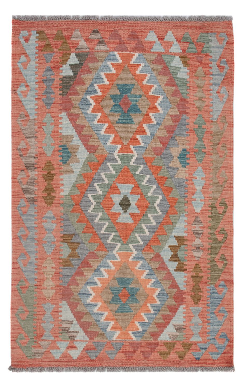 Dieser kunstvolle Kelim - Splash besticht das Auge mit seinen angesagten Farben. So bringt er eine moderne und harmonische Eleganz in Ihr Wohnambiente mit ein. Kelim Teppiche sind im Gegensatz zu klassischen Orientteppichen in traditioneller Art handgewebt statt geknüpft. In anderen Ländern werden diese Exemplare auch als Kissen oder Vorhänge genutzt. Diese Teppiche haben einen dünnen Flor, für das feste Obergewebe wird 100% Schurwolle verwendet, welche von Natur aus äußerst pflegeleicht und strapazierbar ist. Als echten Kelim bezeichnen Experten nur Teppiche, welche in der Türkei, dem Kaukasusgebiet, Persien, Afghanistan und Turkmenien hergestellt wurden. Echte Teppiche aus dem Orient eben.