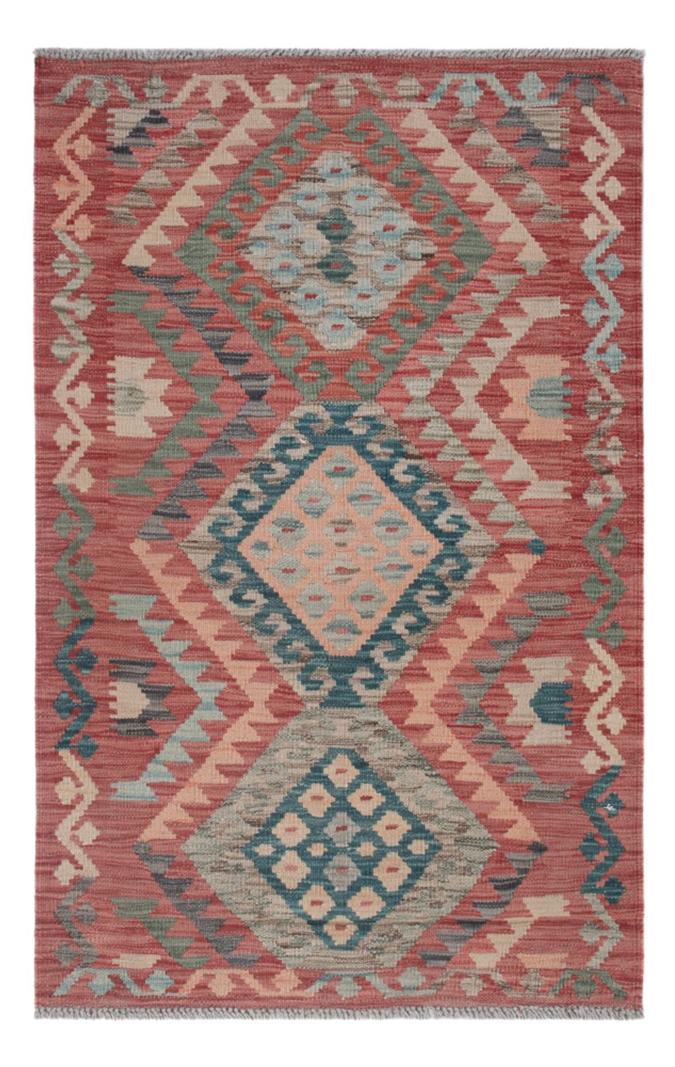 Dieser kunstvolle Kelim - Splash besticht das Auge mit seinen angesagten Farben. So bringt er eine moderne und harmonische Eleganz in Ihr Wohnambiente mit ein. Kelim Teppiche sind im Gegensatz zu klassischen Orientteppichen in traditioneller Art handgewebt statt geknüpft. In anderen Ländern werden diese Exemplare auch als Kissen oder Vorhänge genutzt. Diese Teppiche haben einen dünnen Flor, für das feste Obergewebe wird 100% Schurwolle verwendet, welche von Natur aus äußerst pflegeleicht und strapazierbar ist. Als echten Kelim bezeichnen Experten nur Teppiche, welche in der Türkei, dem Kaukasusgebiet, Persien, Afghanistan und Turkmenien hergestellt wurden. Echte Teppiche aus dem Orient eben.