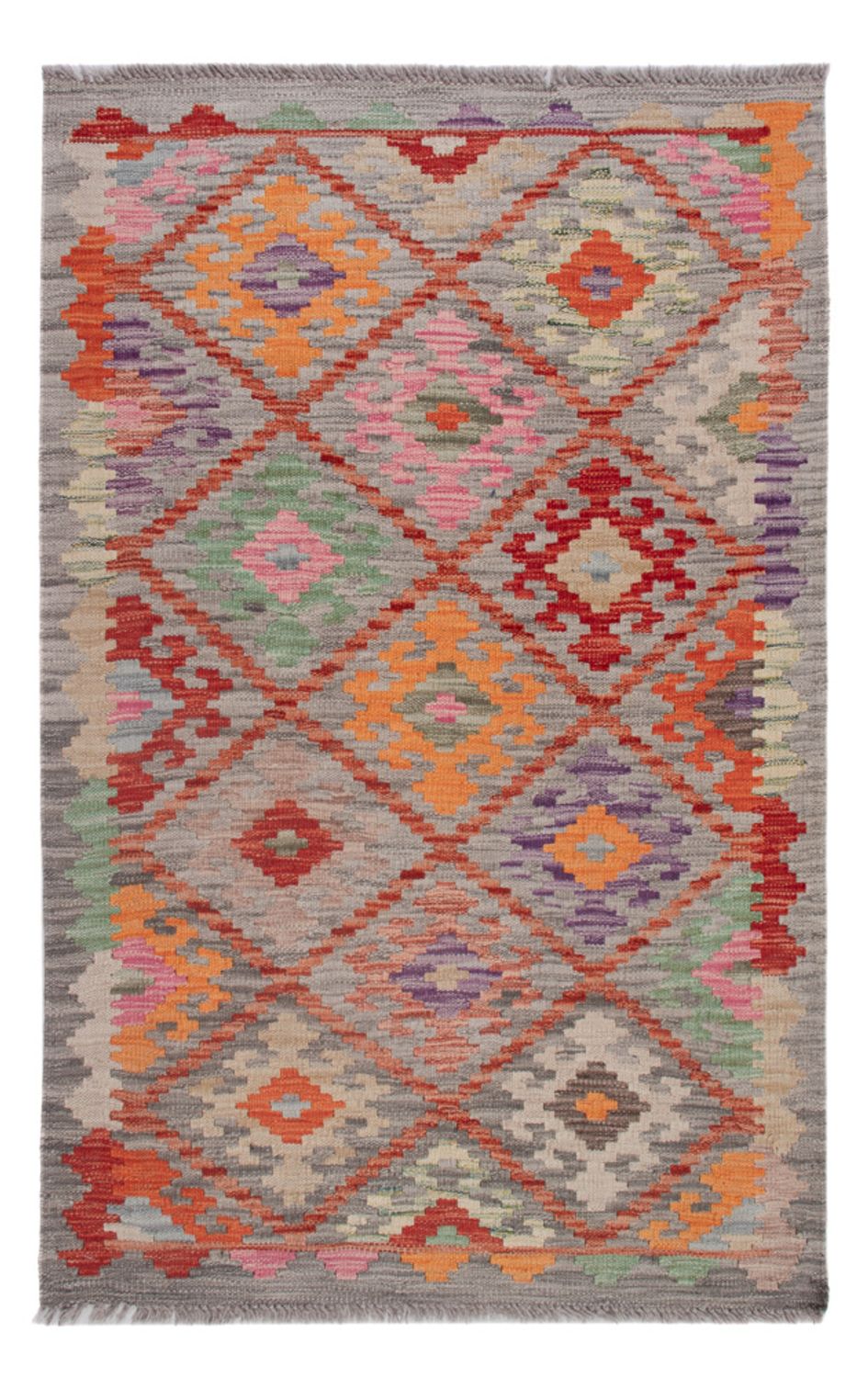 Dieser kunstvolle Kelim - Splash besticht das Auge mit seinen angesagten Farben. So bringt er eine moderne und harmonische Eleganz in Ihr Wohnambiente mit ein. Kelim Teppiche sind im Gegensatz zu klassischen Orientteppichen in traditioneller Art handgewebt statt geknüpft. In anderen Ländern werden diese Exemplare auch als Kissen oder Vorhänge genutzt. Diese Teppiche haben einen dünnen Flor, für das feste Obergewebe wird 100% Schurwolle verwendet, welche von Natur aus äußerst pflegeleicht und strapazierbar ist. Als echten Kelim bezeichnen Experten nur Teppiche, welche in der Türkei, dem Kaukasusgebiet, Persien, Afghanistan und Turkmenien hergestellt wurden. Echte Teppiche aus dem Orient eben.