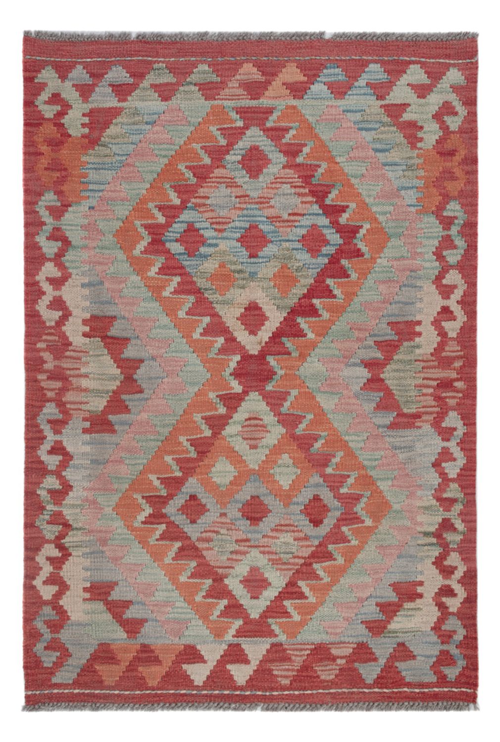 Dieser kunstvolle Kelim - Splash besticht das Auge mit seinen angesagten Farben. So bringt er eine moderne und harmonische Eleganz in Ihr Wohnambiente mit ein. Kelim Teppiche sind im Gegensatz zu klassischen Orientteppichen in traditioneller Art handgewebt statt geknüpft. In anderen Ländern werden diese Exemplare auch als Kissen oder Vorhänge genutzt. Diese Teppiche haben einen dünnen Flor, für das feste Obergewebe wird 100% Schurwolle verwendet, welche von Natur aus äußerst pflegeleicht und strapazierbar ist. Als echten Kelim bezeichnen Experten nur Teppiche, welche in der Türkei, dem Kaukasusgebiet, Persien, Afghanistan und Turkmenien hergestellt wurden. Echte Teppiche aus dem Orient eben.