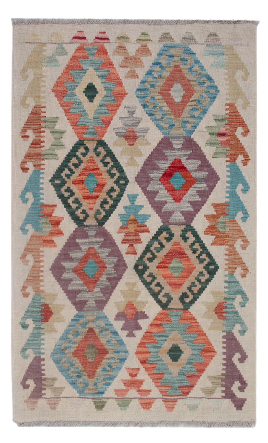Dieser kunstvolle Kelim - Splash besticht das Auge mit seinen angesagten Farben. So bringt er eine moderne und harmonische Eleganz in Ihr Wohnambiente mit ein. Kelim Teppiche sind im Gegensatz zu klassischen Orientteppichen in traditioneller Art handgewebt statt geknüpft. In anderen Ländern werden diese Exemplare auch als Kissen oder Vorhänge genutzt. Diese Teppiche haben einen dünnen Flor, für das feste Obergewebe wird 100% Schurwolle verwendet, welche von Natur aus äußerst pflegeleicht und strapazierbar ist. Als echten Kelim bezeichnen Experten nur Teppiche, welche in der Türkei, dem Kaukasusgebiet, Persien, Afghanistan und Turkmenien hergestellt wurden. Echte Teppiche aus dem Orient eben.
