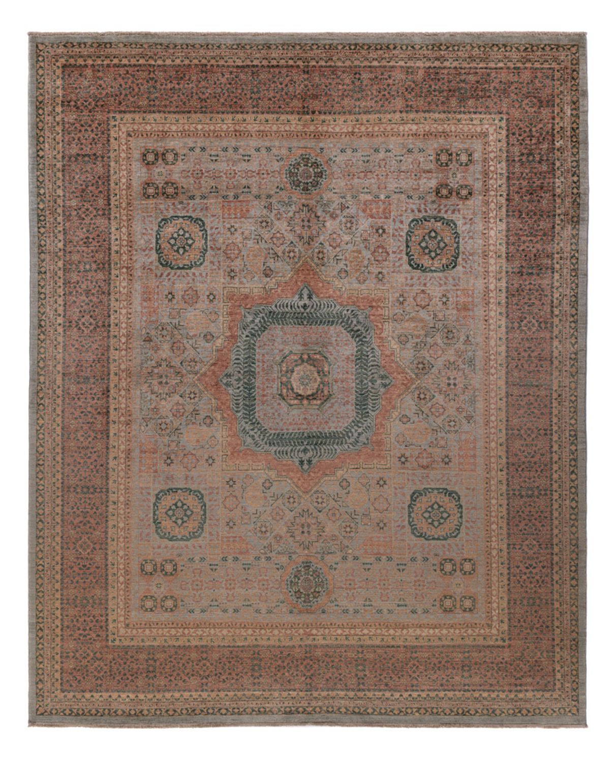 Dieses Exemplar ist mit höchster Sorgfalt aus Hand gefertigt worden. Bei handgearbeiteten Teppichen kann es zu minimalen Unregelmäßigkeiten bei Größe und Form kommen.